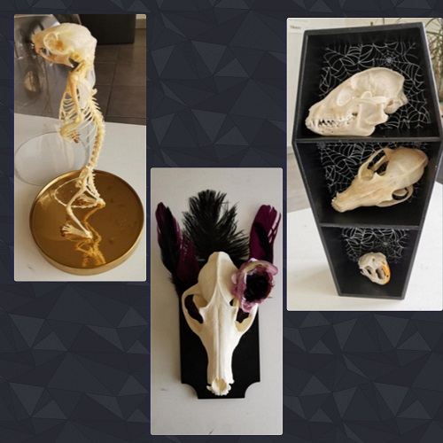 La passion des crânes et des chauves-souris me vient de loin, je ne sais pas trop pourquoi mais cela prend de plus en plus de place dans ma vie. Les idées des créations et de la boutique sont arrivées très naturellement, je n’y ai pas vraiment réfléchi. J’ai commencé à créer un cabinet de curiosités et très vite j’ai eu envie de réaliser mes propres créations et puis une envie de changement de profession… Une boule de neige, qui est vite arrivée sans que je m’en rende compte et maintenant je ne voudrais rien faire d’autre.
