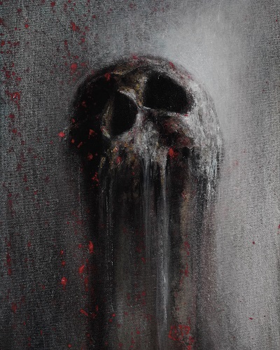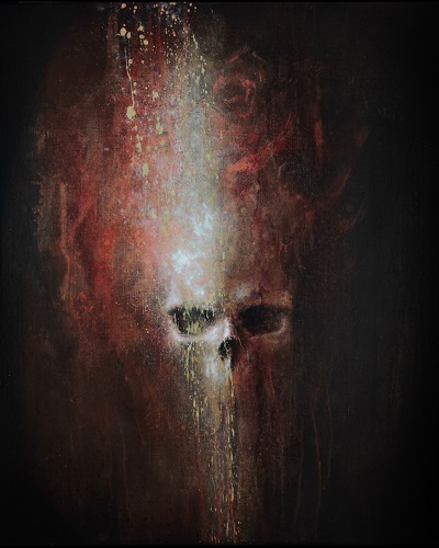 1-Talking Light : C’est un de mes portraits, contrairement à mes crânes que je peaufine pas mal, les portraits sont réalisés rapidement, je laisse parler les accidents de parcours. C’est peint dans un état second, le choc émotionnel s’exprime et je ne suis finalement que spectateur. C’est l’adolescent torturé qui prend la barre.