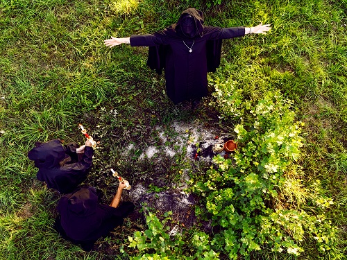 Les morceaux comportent des ponts et développements fournis en chœurs et claviers, quasi mystiques. Il y a dans l’ensemble un côté transcendant chez le Coven du Carroir malgré la brutalité des riffs. En tant que Sorcier as-tu des rituels pour composer ou jouer de la musique (lieu/moment de la journée/ambiance).