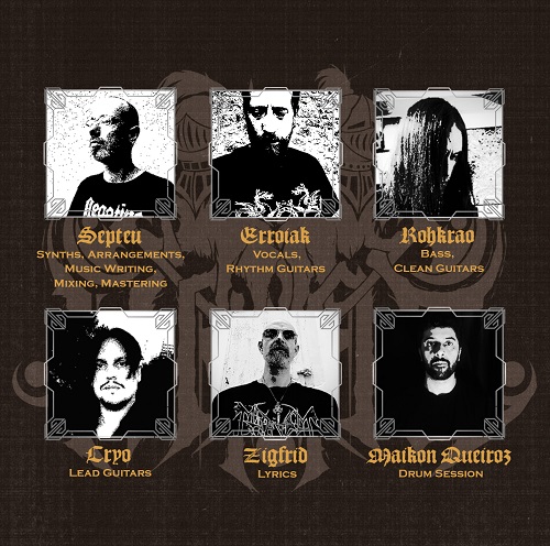 Septev : au départ j’ai fait ce projet pour m’amuser et expérimenter ce que je n’avais fait auparavant. Rohkrao (qui est mon cousin) a directement accepté de se joindre à l’aventure et c’est ensuite que j’ai contacté Erroiak qui n’a, lui non plus, pas hésité pour nous rejoindre. Depuis, on s’entend vraiment très bien et on échange régulièrement. La première nouveauté de cet album est l’arrivée de Cryo dans le line up. Après avoir bossé sur son dernier album d’Eminentia Tenebris (sorti chez Antiq), je me suis dit qu’il pourrait vraiment apporter quelque chose en plus à Hrad. On s’entend très bien également donc je pense qu’on a trouvé notre équilibre au niveau du Line up. La seconde nouveauté c’est que, contrairement aux précédents opus, nous avons un batteur pour celui-là ! J’avais programmé la batterie comme j’en ai l’habitude, et on a fait appel à un batteur session pour qu’il reprenne ce que j’avais programmé tout en y ajoutant sa touche perso. C’est donc Maikon Queiroz qui s’est occupé des batteries, avec talent ! En ce qui concerne l’organisation, c’est assez rôdé maintenant.