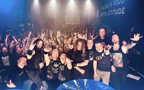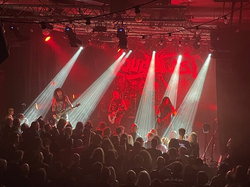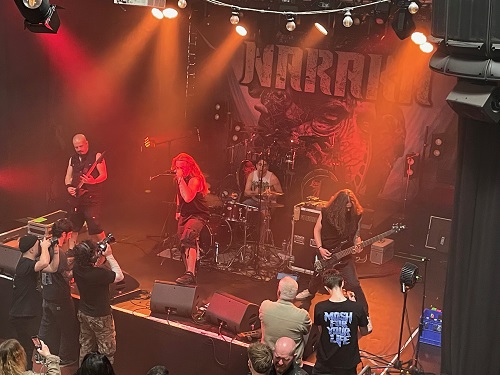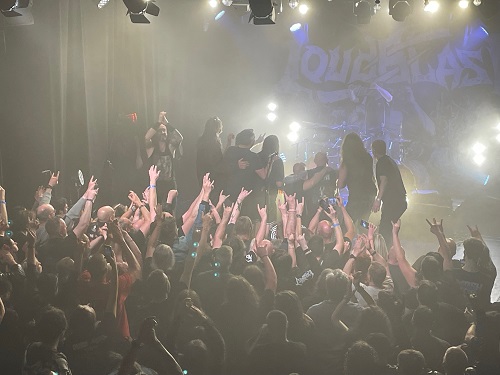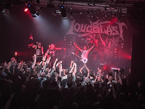 Ça va être enfin au tour de Loudblast de jouer devant un public chaud comme la braise ! Dès les premières notes de l’intro, le public se rapproche au plus près de la scène. L’impatience est palpable et là, ils entrent ! La joie et l’émotion de fêter ces 40 ans de carrière se lisent sur les visages de Stéphane Buriez, Hervé Coquerel, Pierre-Emmanuel Pelisson et Nicklaus Bergen, et nous sommes tous très heureux de faire partie de la fête. Ils nous ont préparés 1H30 de show : « Presumption », « Wisdom… », « Turn the scales », « Abour solitude » avec la participation exceptionnelle d’Hélène, « Subject to spirit », « Fire and ice », « Sublime dementia », « My last journey », « Putrid age of decay », « From beyond », « Scared to death », « Black death » avec la participation d’Alex Colin-Tocquaine d’Agressor, « Visions of your fate », « Malignant growth », « Cross the threshold », « Disquieting beliefs », « Man’s own », « No tears to share » avec la participation d’Hélène.