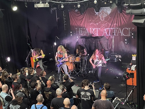 Après 30 minutes de show et juste quelques instants pour préparer la scène suivante, pas le temps pour le public de redescendre de son nuage, c’est au tour de HEART ATTACK de faire son entrée. On reste dans le Thrash mais dans un esprit un peu plus moderne. 1 intro et 6 titres qui feront encore monter la température dans le public : « Septic melody », « Take your pride back », « Burn My Flesh », « Wings Of Judgement », « When the light dies down », « Negative Sun ». C’est le feu !!