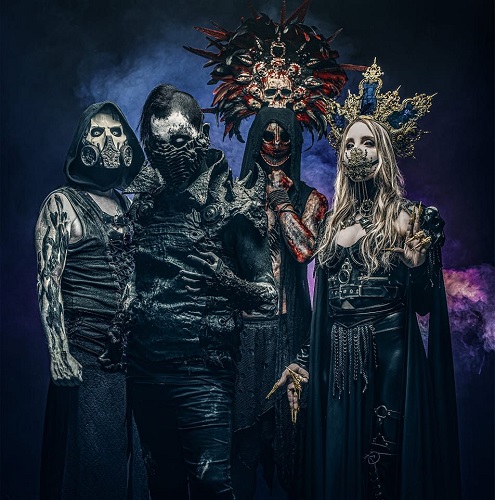 Visuellement le groupe en impose et combine par ses 4 figures charismatiques une multitude de références : Famine est la bête carnivore, insatiable, sauvagerie incarnée, élevée dans les plus sinistres rites vaudou. Cinis est à l’inverse la prêtresse élégante à la peau diaphane vêtue avec un raffinement extrême, à laquelle on se livrerait corps et âme sans hésitation. Hatred est le maître de cérémonie, pourri jusqu’à la moelle, corrompu, décadent, bilieux, aussi vilain qu’il est charismatique. Enfin Morphée incarne un monde post apocalyptique, une humanité obligée de vivre masquée et ravagée par les psychotropes.