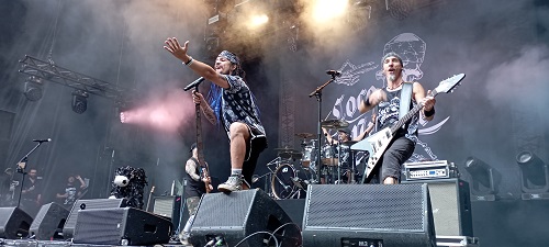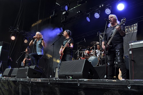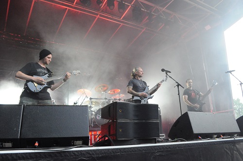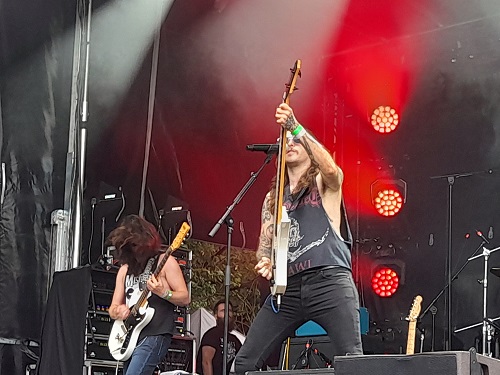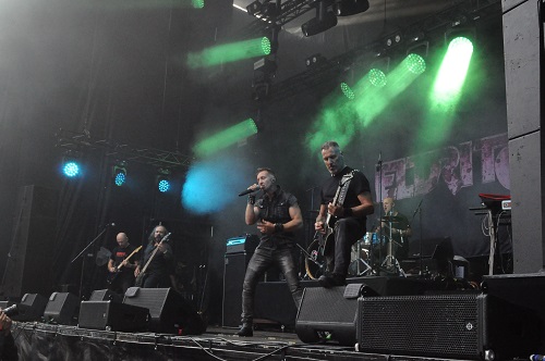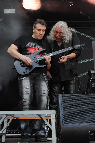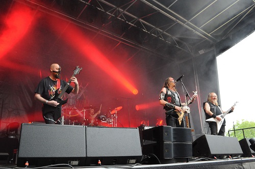 Le soleil à l’air d’aimer le Heavy metal car il se montre pour la prestation d’ADX. Même si le groupe a débuté dans les années 80, les 2 derniers membres fondateurs encore présents, le chanteur Phil et le batteur Dog, sont très bien entourés et font perdurer l’héritage du groupe de très belle manière. Les nouveaux morceaux se mêlent parfaitement aux anciens. Il est dommage que le public soit si peu nombreux à cause des averses.