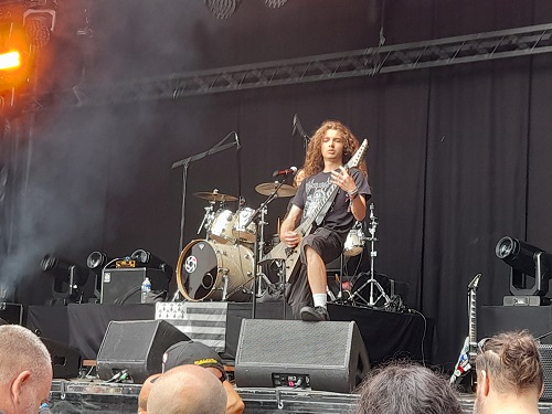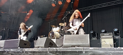 Après une pause déjeuner prise auprès des food-truck présents à l’entrée du festival depuis quelques années, le coup d’envoi des concerts est donné par Gonezilla sur la Eye Stage. C’est le projet Doom teinté de death comportant 2 membres de « Après moi le déluge » présent l’année dernière qui a la lourde tâche d’entamer cette journée et les rythmes lents attirent le maigre public de début d’après-midi. L’ambiance de festival à 13h30 n’est pas la meilleure pour apprécier du Doom mais Gonezilla s’en sort plutôt bien. Sur la grande scène arrivent les jeunes death metalleux de Tanork. Agés de 17 et 18ans les jeunes membres du groupe breton connaissent leur sujet et apportent une touche de fraîcheur avec leurs riffs puissants. Le groupe se compose d’un guitariste chanteur, un bassiste chanteur et d’un batteur mais arrive à remplir la grande Menn’ Stage et captive le publique. Un groupe qui, s’il continue sur cette lancée, se promet un bel avenir.