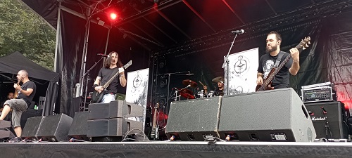 Le lendemain, la journée commence avec une conférence de presse organisée par le service culturel de la mairie de Mennecy, organisatrice de l’événement, et animée par le maire de la ville. Ce dernier revient sur la création du festival et les contraintes que son équipe et lui rencontrent et risquent de rencontrer à l’avenir. Il nous parle ouvertement de son rêve de pouvoir faire venir Helloween sur son festival et nous fait part de ces craintes concernant les budgets culturels alloués à ce genre d’évènement qui pourraient avoir une incidence sur les prochaines éditions. On le sent réellement passionné par les musiques metalliques et très impliqué pour la culture sous toutes ces formes dans sa ville. Il est très important pour lui et ses équipes de continuer à proposer un festival de qualité, avec une affiche diversifiée et à un prix correct. On peut dire que cette édition 2024 rempli une fois de plus tous ces critères. Juste après ça, la presse et quelques invités du public ont droit à un concert privé de Fatima, groupe de Doom Stoner, venu présenter son nouvel album. Un show trop court mais qui ravi le public présent et donne encore plus envie de voir le show complet de ce soir.