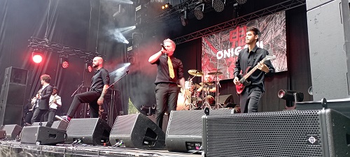 Les parisiens d’Onigami arrivent sur la Menn’ Stage avec leur metalcore japonisant et comblent les amateurs du genre. C’est bien exécuté et le show est carré mais n’étant pas un amateur du genre je reste à distance et fait un tour dans le village des stands.