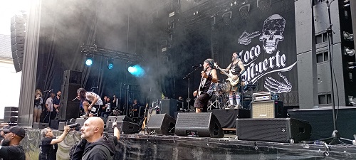 Esta en el escenario principal que llegan los locos de la Locomuerte (C’est sur la scène principale que déboulent les fous de Locomuerte). Le public est très nombreux pour soutenir les plus hispaniques des franciliens qui nous offrent un show thrash crossover très énergique. Ça saute, ça bouge, ça court, ça tourne et ça se roule par terre et tout ça juste sur scène. Leur communication à l’air de fonctionner car une foule dense se presse pour assister au spectacle et on voit qu’une grande partie du public s’est déplacé pour eux. Le public se déchaîne et enchaîne les slam, circle pit et autres joyeusetés dansantes.
