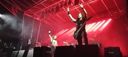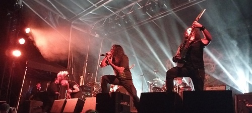 Arkania vient nous proposer un thrash teinté de death mélodique assez puissant. Ils livrent une prestation pêchue et moins excentrique que les fous morts hispaniques ce qui calme un peu les ardeurs d’une partie du public venu pour « gigoter ».