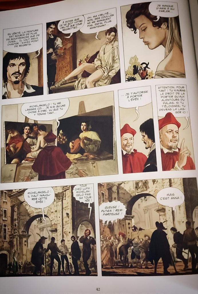 Quand on est dessinateur, c’est ambitieux de s’attaquer à un peintre aussi talentueux que Le Caravage. Mais Manara, en maître du 9ème Art, a su faire monter le peintre sur ses planches. Et c’est un bonheur de voir Le Caravage prendre vie sous les crayons de Manara. Il est comme on l’imagine, rebelle, séduisant, bagarreur, hérétique…