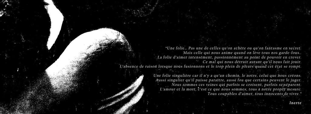 Pour l’aspect chanson, le format autour de 4 à 5min fait vraiment du bien quand on est habitués comme moi au Black atmo qui vous balance des boucles ronronnant sur 15min. D’autant plus que cette courte durée des pistes n’est en aucun cas révélatrice d’un art bridé, mais plutôt d’une remarquable densité. INERTE explore et varie énormément ses effets en cours de morceaux : « Non Serviam » et « Levitation » sont en crescendo émotionnel, « Renaissance satanique » vous violente sauvagement pour vous caresser à partir de sa partie centrale et sa basse ultra sexy, genre remake de 9 semaines ½. « Avant que tu ne la prennes » est un midtempo ravageur, incompressible de lourdeur, un parpaing de ressenti en oxymore (Amour noir de velours…).