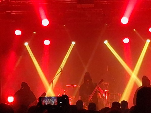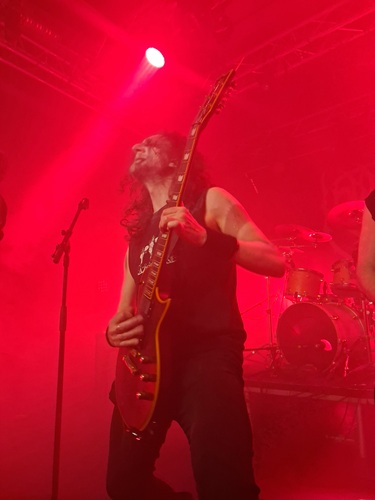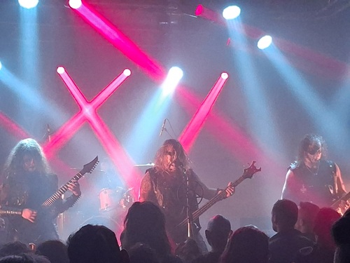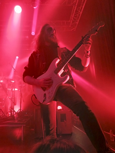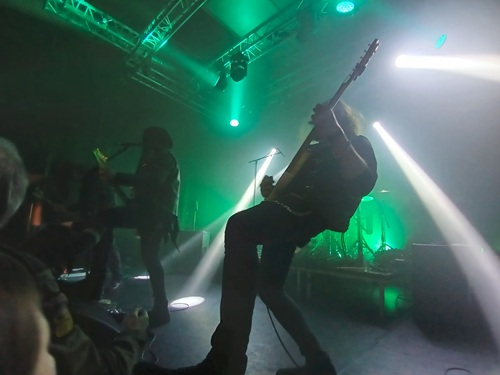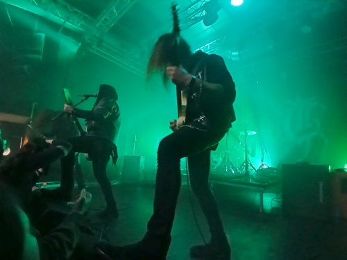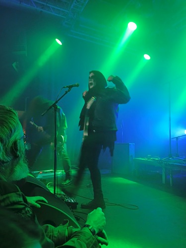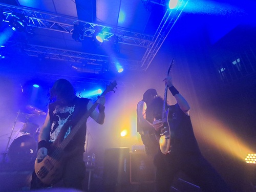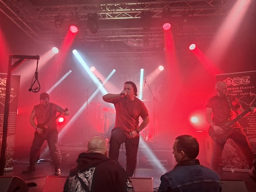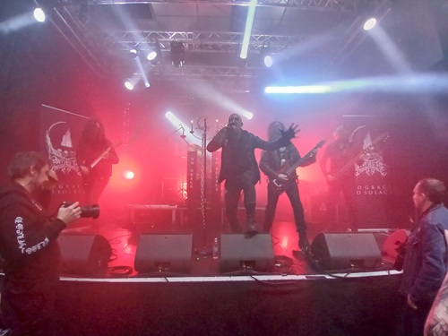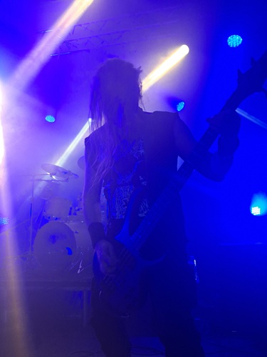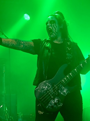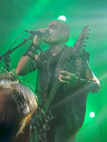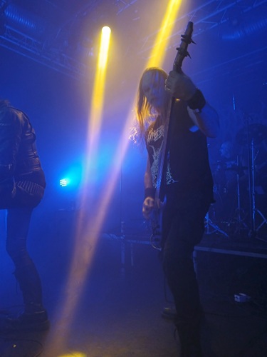 On ne présente plus GORGON, dans les années 90, lorsque tous les groupes de black metal étaient grimés, avec des tenues vestimentaires de cuirs et de clous, les membres de GORGON étaient à contre-courant, avec des pantalons treillis urbains et des teeshirts verts… Ce groupe a toujours fait preuve d’authenticité. Après cette brève anecdote, revenons à notre festival… Le set commence avec quelques petits problèmes, d’abord le son, le batteur n’a pas de retour, ensuite l’installation de la batterie car oui, la grosse caisse est mal fixée et se déplace. Puis une fois le tout à peu près réglé, j’ai l’impression que pour rattraper le retard, GORGON va accélérer le tempo de certains titres. GORGON aime la scène, la bassiste joue le jeu pour les photographes. Et dans la fosse, le public est bien chaud, car ça se bouscule pas mal, dans la bonne humeur.