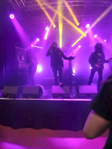 On dirait qu’on commence les choses plus sérieuses avec l’arrivée de SKAPHOS, leur set est vraiment transcendant, on baigne dans le mysticisme. Musicalement le tempo est plutôt rapide, avec un chant guttural qui ajoute un côté plutôt malsain. Pas de répit, les titres s’enchainent les uns à la suite des autres pour nous offrir un show bien rodé.