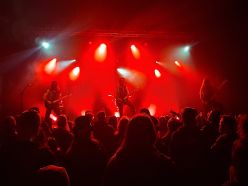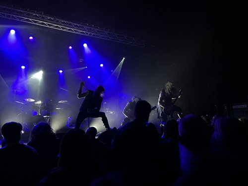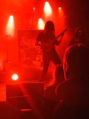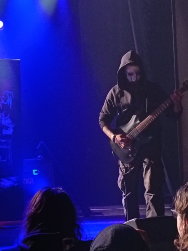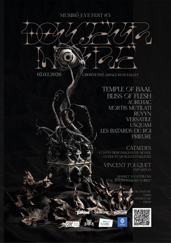 Place au premier groupe de la soirée, avec PIEURE, le bourreau est sur l’échafaud, il compte bien recevoir le soutien du public car oui, il a la lourde tâche d’ouvrir le festival. Dès les premiers titres il fait l’unanimité. Il est certain que le combo est bien rodé, je suis impressionné par le jeu du bassiste sans médiator : son jeu apporte une certaine chaleur sans en retirer la moindre noirceur.