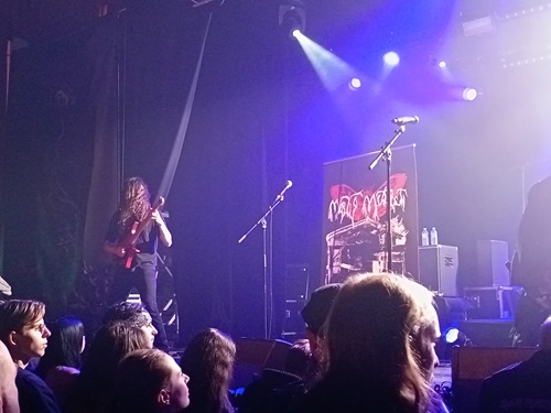 Il est temps pour moi de me sustenter, et ça tombe bien, au bar, ils proposent des pâtes, de quoi me rendre heureux, des pâtes et MORTIS MUTILATI. Le set que nous propose le groupe est bien meilleur, que le dernier que j’ai vu au Winter Rising Fest.