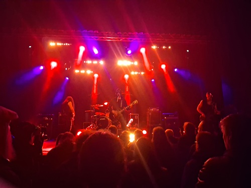 Arrivent ensuite LES BÂTARDS DU ROI. Après une petite intro, le trio monte sur scène, deux guitares et un batteur, parmi eux, on peut supposer deux bâtards et le fils légitime, car la rivalité instrumentale et vocale ne fait aucun doute et cela fait partie intégrante du spectacle, appuyée par les duels entre chant clair et chant criard.