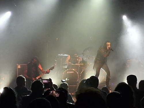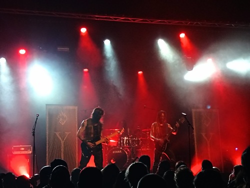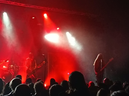Julien : Pour moi LA découverte de ce fest. J’en avais un peu entendu parler sans y prêter grande attention mais force est de constater que j’étais passé à côté d’un groupe très intéressant. Ils arrivent dans leurs habits de scène et nous proposent leur black metal mélodique de très bonne facture. Les mélodies sont bien trouvées et brillamment exécutées et les différents chants se mêlent très bien. Vu la queue après leur prestation sur leur stand de merch, je ne suis pas le seul à avoir apprécié.